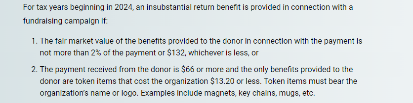 I've searched for the answer but have come up empty; has the IRS released the 2025 insubstantial benefit amount? Sorry, I may not be asking the right question but this is what I am referring to:
